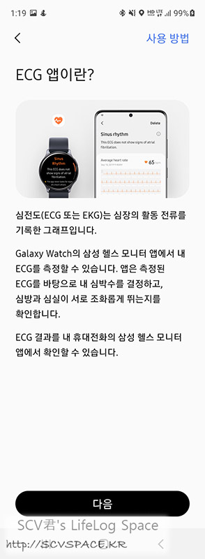 이 부분은 적당히 이정도 보고, 제가 제일 관심있었던 심전도 측정 기능부터 사용해 봅니다.
