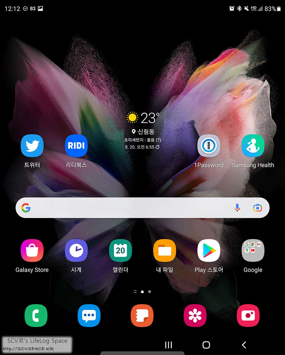 아무튼 이렇게 접었을 때와 펼쳤을 때의 홈 화면이 다른것부터 신선하게 와 닿았던, 비교적 재밌었던 2박 3일이었습니다.