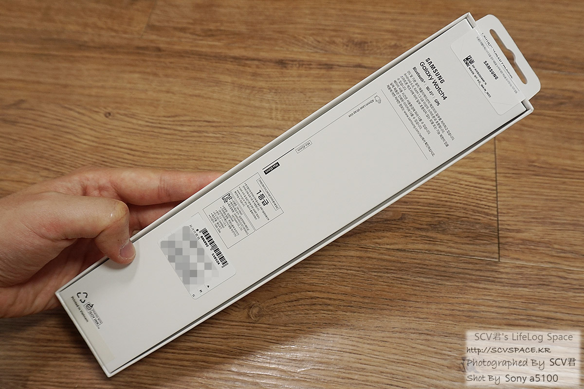 박스 뒷면에는 스펙이나 인증관련 정보들이 적혀있고, 워치의 스트랩 사이즈도 표시되어 있습니다.