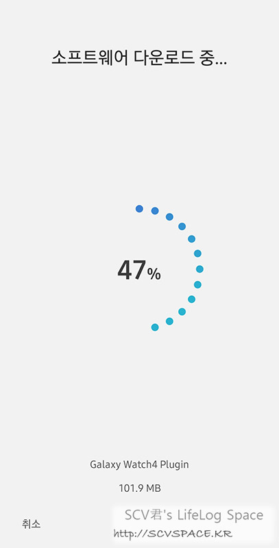 연결 중 다운로드받는 워치 플러그인이 거대해서인지, 다운로드 다 받고도 상대적으로 셋팅되는데 좀 걸리더군요. (기어핏2와 비교해, 총 수 분 남짓)