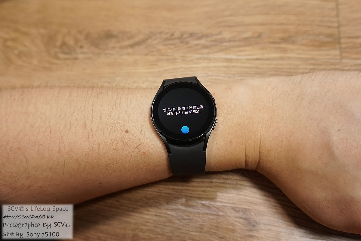 폰 쪽에서 기본 관리화면이 나올때쯤 되면, 워치에도 기본적인 제스처를 학습시켜주는 안내문이 뜨게 됩니다.