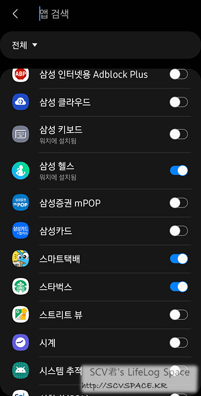 후자는 기어핏2때와 다르게 허용해야 알림을 받을 수 있기에(기어핏2는 기본 전체허용, 신규 앱 설치시 선 허용) 한번 쭉 확인했었군요.