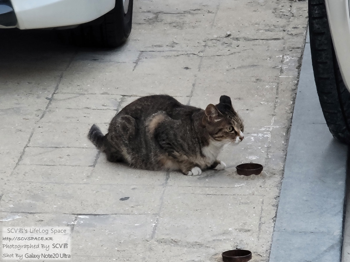 역에서 내려 집으로 걸어오다 항상 같은 건물 근처에서 눈에 띄는 고양이를 드디어 찍었습니다.