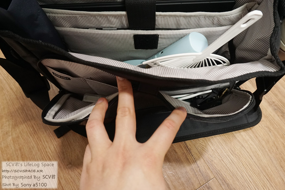 이러나 저러나 앞쪽 수납부로 인해 안쪽이 좁아지는 현상은 아무래도 있을것 같습니다. 전 앞쪽에 그렇게까지 뭘 많이 넣진 않았지만..