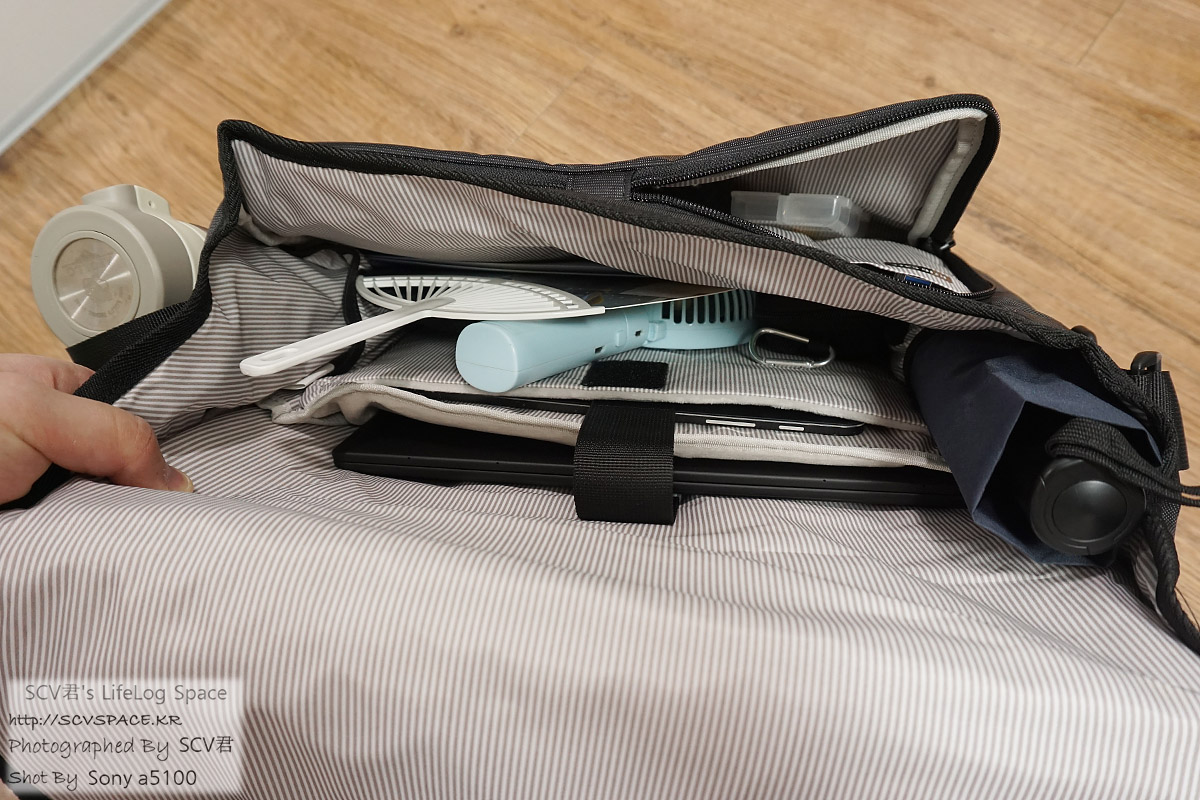 이러나 저러나 앞쪽 수납부로 인해 안쪽이 좁아지는 현상은 아무래도 있을것 같습니다. 전 앞쪽에 그렇게까지 뭘 많이 넣진 않았지만..