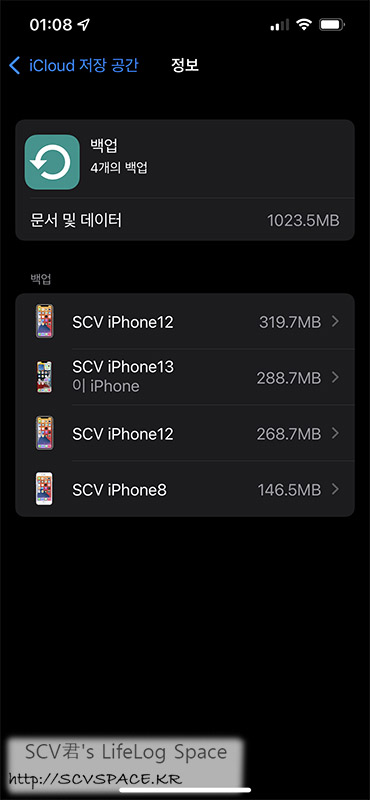 초기화 후에는 iCloud에 남아있던 기기 백업데이터도 모두 지워버렸구요.