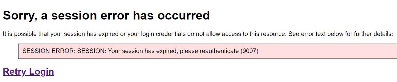 Admin login: SESSION ERROR: SESSION: Your session has expired, please reauthenticate (9007) #113