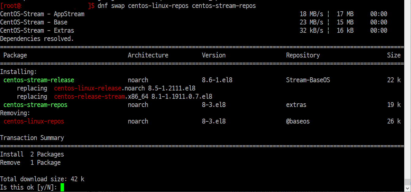 이제 리포지토리를 CentOS에서 CentOS Stream 으로 전환하겠습니다.