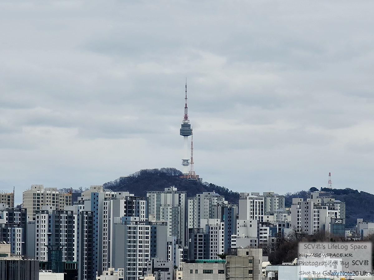 위 사진은 사무실이 있는 건물 옥상에서 10배줌으로 본 남산타워입니다. 제 나름대로의 시정 지표이기도 하고.