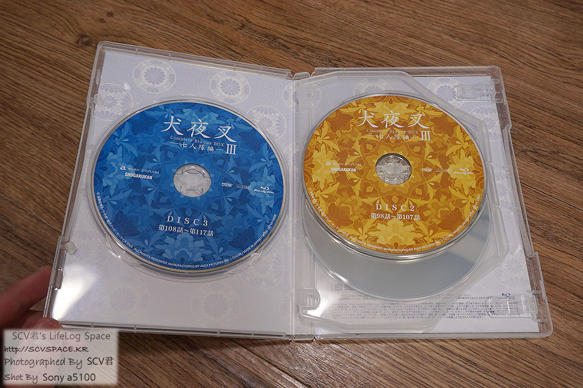 이쪽 수납부에는 블루레이 디스크 세장이 들어있습니다. TVA 본편의 88-117화가 나뉘어 담겨있지요.