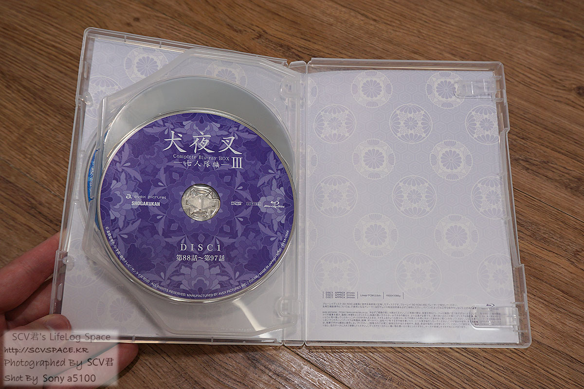 이쪽 수납부에는 블루레이 디스크 세장이 들어있습니다. TVA 본편의 88-117화가 나뉘어 담겨있지요.