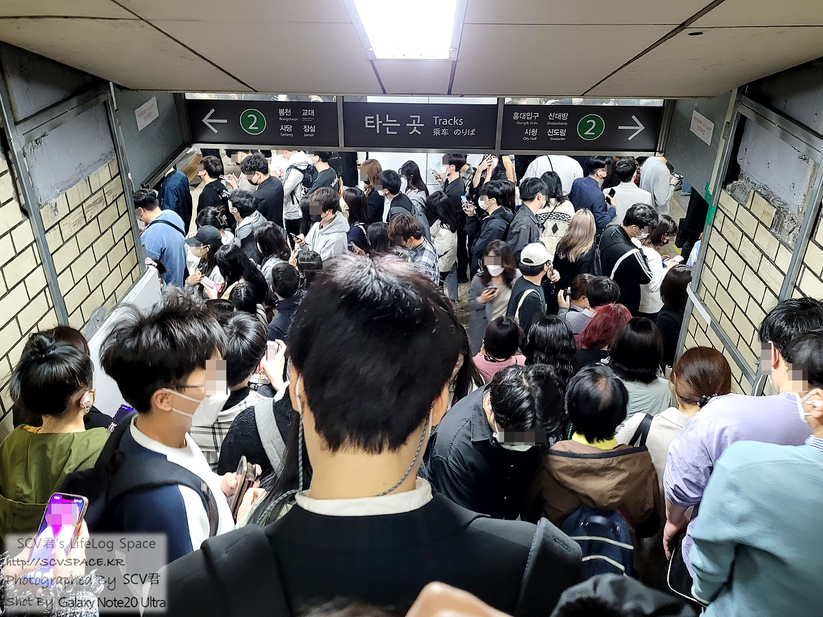 아무리 붐벼도 이거 1/3 정도 인원이던 평소와 다르게 강남방향의 열차 지연으로 그쪽 줄선 분들이 못빠져서 일어난 일이더군요.
