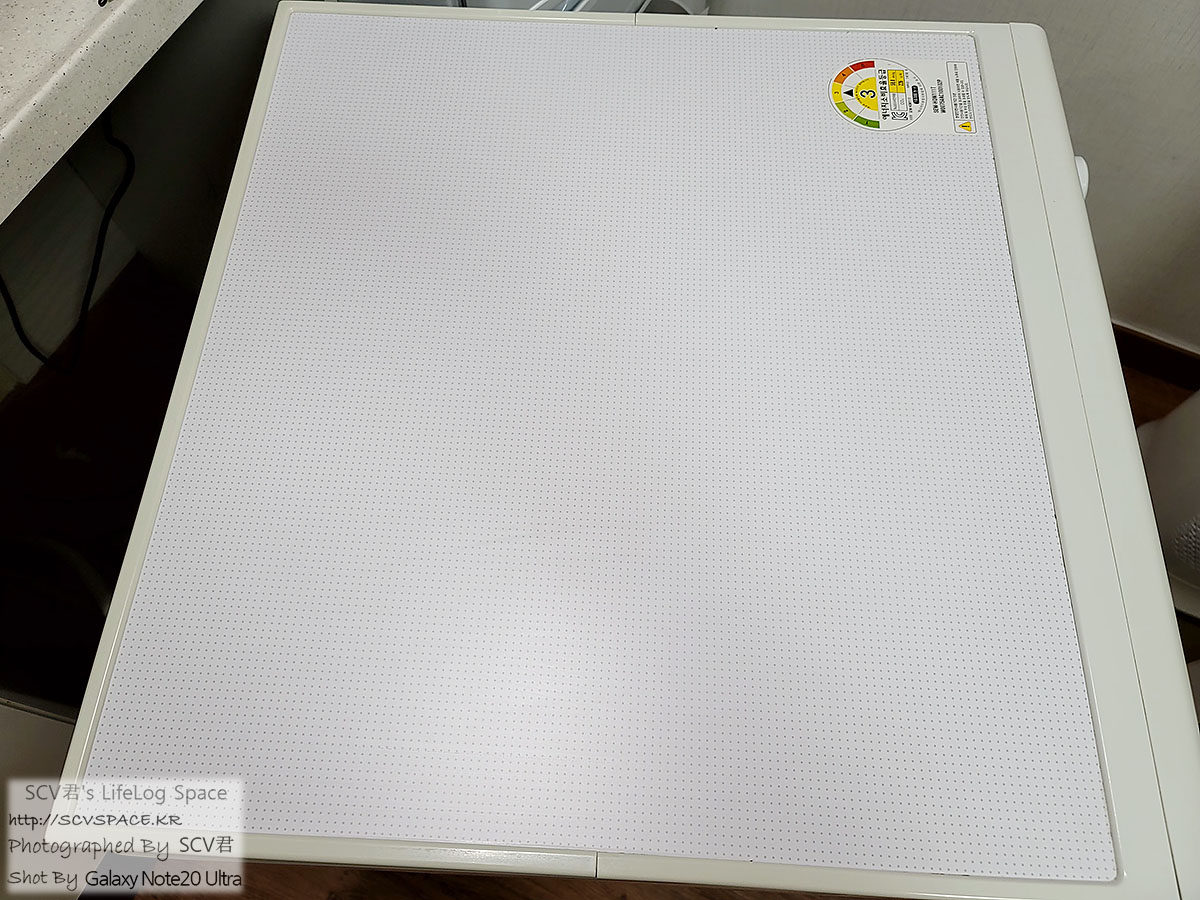 사진은 드럼세탁기 윗면입니다. 보통 싱크대 옆 공간에 붙박이로 들어가있거나 한 그거 말이죠.