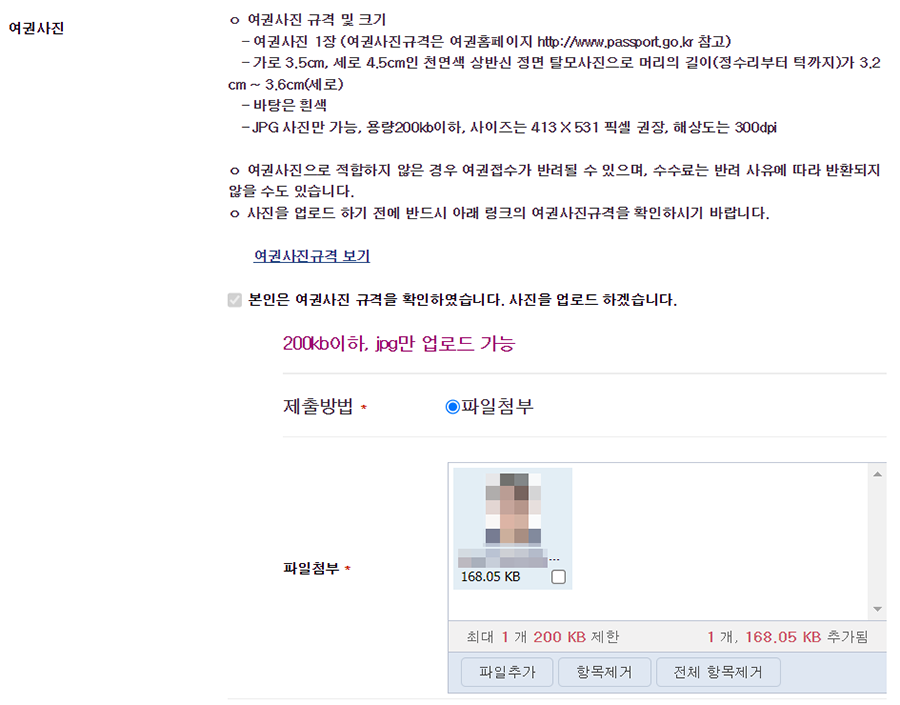 제 경우는 여권사진 규격에 맞는 사진파일도 가지고 있고, 이미 여권이 있기에 신청에 무리가 없었습니다.
