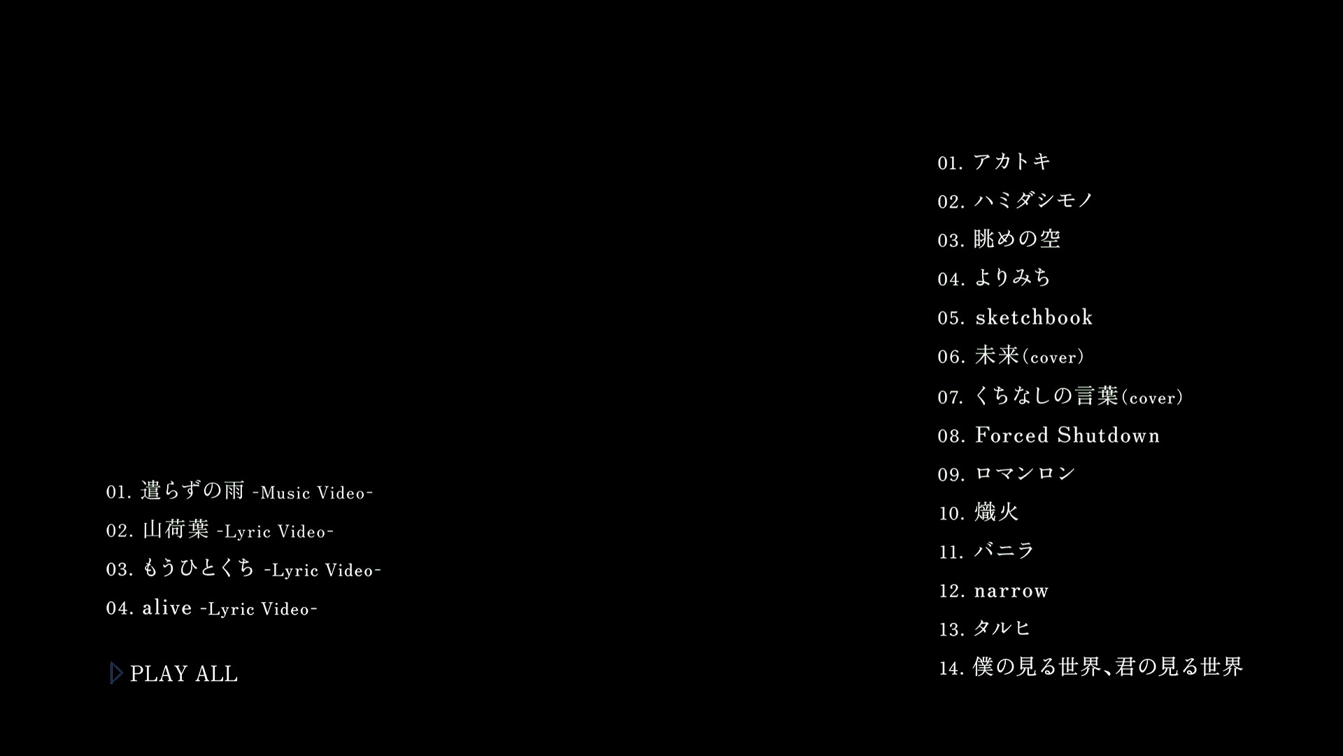 이번 EP에 수록된 네 곡의 MV와 Lyric Video 가 각각 수록되어 있습니다(遣らずの雨는 MV, 나머지는 Lyric Video)