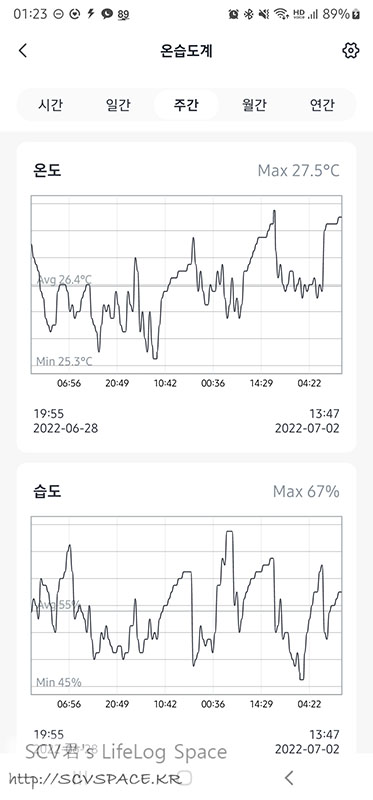 기존에는 습도를 지정해서 새벽사이에 계속 켜두었는데, 센서 정확도에 따라 과하게 돌면 그때의 뜨거운 바람으로 에어컨이 세게 돌아서 새벽에 깨는 일이 잦았구요. 안켜면 새벽 습도가 60%를 훌쩍 넘었고.