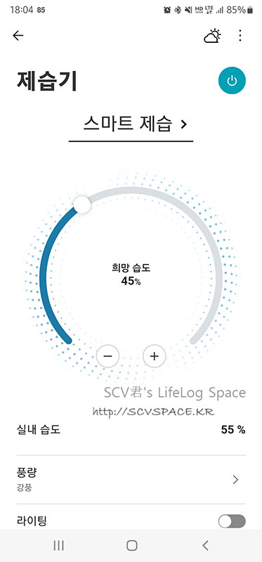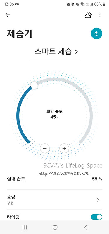 측정 습도가 보수적이라(55 ~ 59%는 현재습도 55%로써 동작함) 설정습도를 (제 기준) 과하게 낮추게 됨