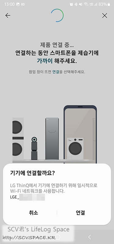 그리고 이 이후로는 최중요 구입목적인 스마트폰 제어를 위해 기기 Wi-Fi를 켠 뒤 연결을 진행합니다.