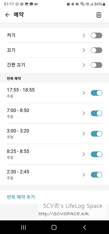 기존에 SwitchBot 앱으로 에어컨 동작을 생활리듬에 맞게 자동화한 상태였는데, 제습기도 비슷하게 원하는 시간을 설정해 잠깐씩 켜고 끌 수 있게 되니 굉장히 편했습니다.