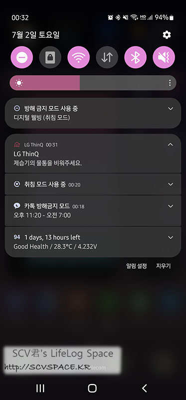 대체로 본체 상단에서도 제어 가능하지만, 애플리케이션에서는 조명이나 상단 라이트 같은 중요하진 않지만 생활에는 필요한(개인적으론 중요했습니다) 기능들이 토글 하나로 ON/OFF 가능해서 좋았습니다.