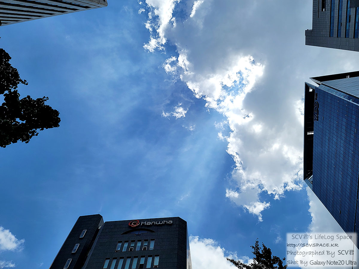 비오고 난 뒤의 맑은 하늘과 적당히 진한 구름, 그 사이에 위치한 해가 전체적으로 뭔가 좋았습니다.