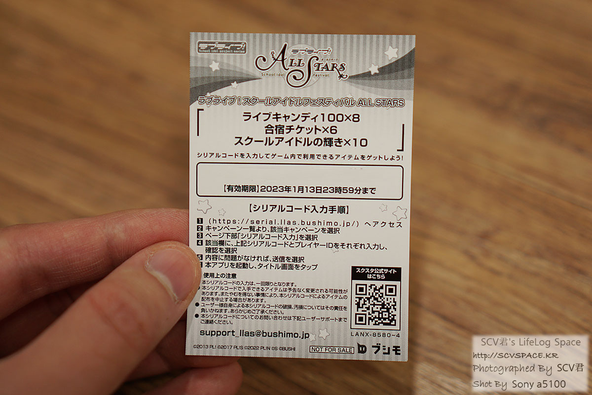 추가로, 초회생산 한정으로는 스쿠스타(スクスタ)에서 사용 가능한 특전 시리얼 코드가 들어있습니다.