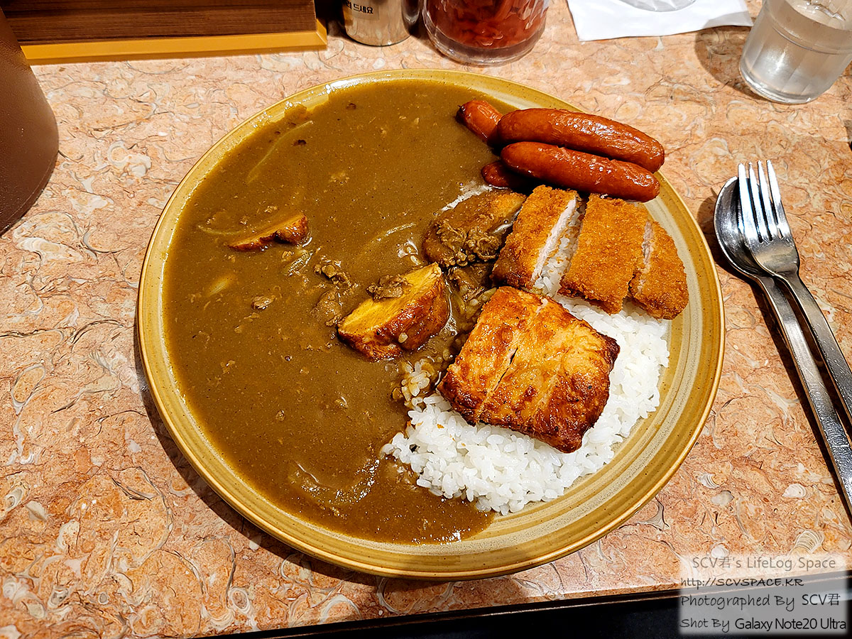 참고로 사진의 카레는 비프카레 + 치킨까스 + 소시지.