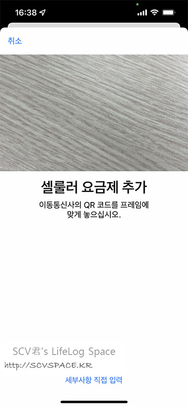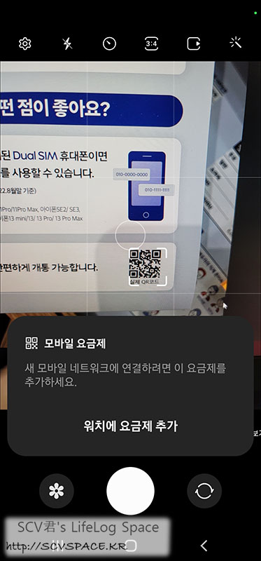 오른쪽 QR코드를 찍으시면 지원 단말(제 경우는 아이폰) 에서는 '요금제 등록' 이 바로 뜹니다.