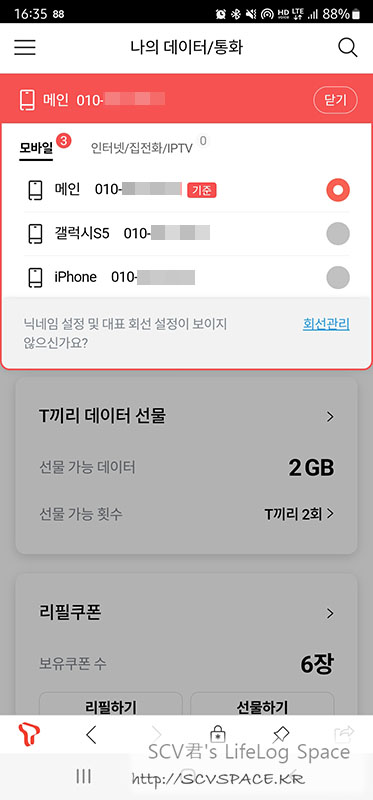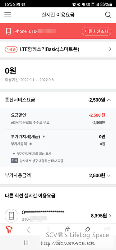 우선, 제 경우는 SK텔레콤에서 LTE 요금제를 사용하고 있습니다.