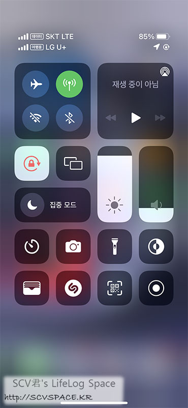 상단 아이콘도 그렇지만, 위 왼쪽처럼 제어센터 내렸을 때의 두 통신사 표시가 굉장히 눈에 띕니다.