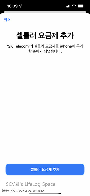 제 경우는 아이폰에 설정할건데, 설정 > 셀룰러 에 들어가면 위쪽에 '셀룰러 요금제 추가' 라고 있습니다.
