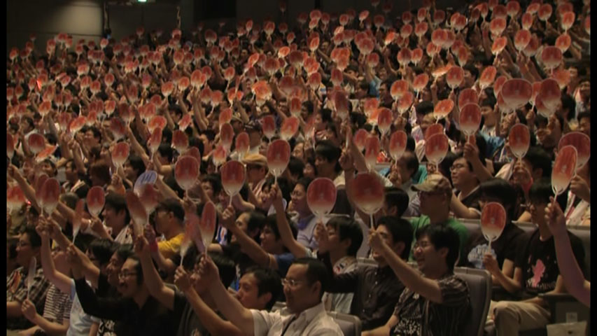 다음에 수록된 부분은 '금붕어 건지기' 를 모티브로 입장시 관객에게 나눠준 부채(금붕어) 를 누가 많이 받아내는지 겨루는 코너.