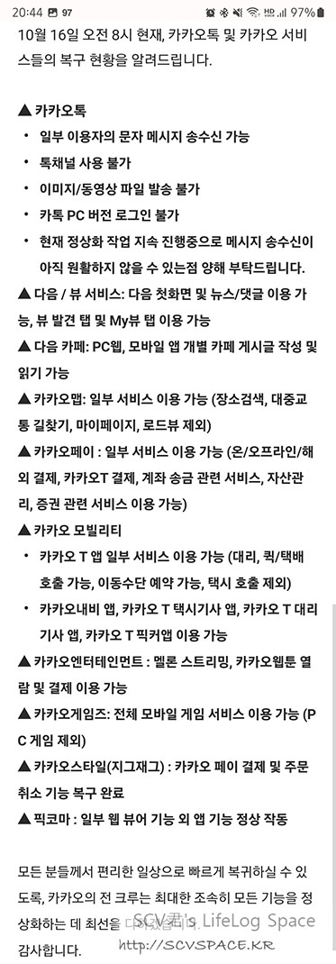 뉴스기사는 너무 많아서, 가까이 있는 티스토리 장애공지나 링크해둡니다 [바로가기]
