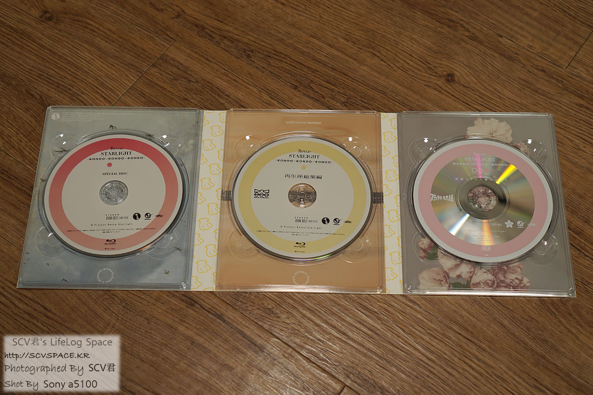 이렇게 총 세장의 디스크가 들어있습니다. 맨 오른쪽은 신곡이 수록된 CD이고, 나머지는 블루레이들.