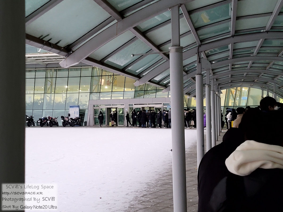 역시 전날과 비슷하게 새벽 6시쯤 집을 나섰고 같은 역에서 같은 버스를 탔지만 눈이 안온 덕분인지(토요일은 새벽에 눈이 왔습니다) 전날보다 10분정도 빠른 7시 20분에 킨텍스 제2전시장에 도착했습니다.
