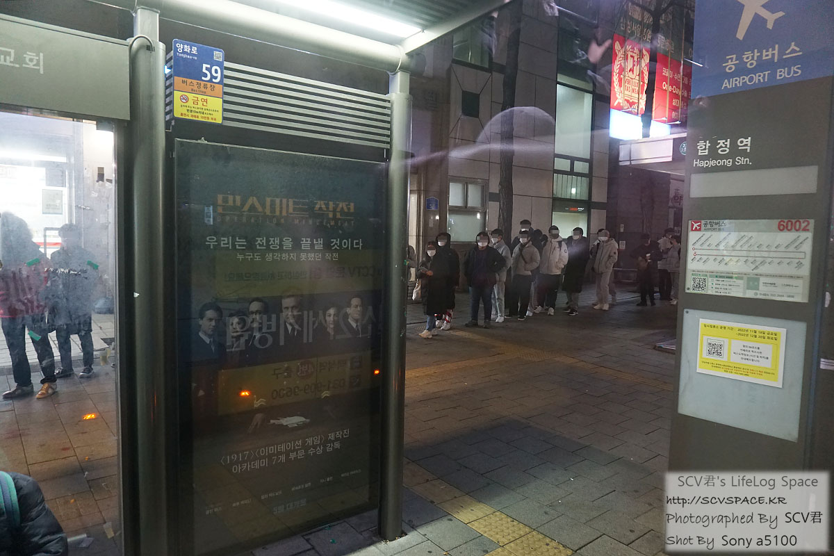 첫날은 미처 사진을 못남겼는데, 최단 환승처인 합정역 정류장에서는 버스에선 끝이 보이지 않는 대기열이 만들어져 있었습니다.