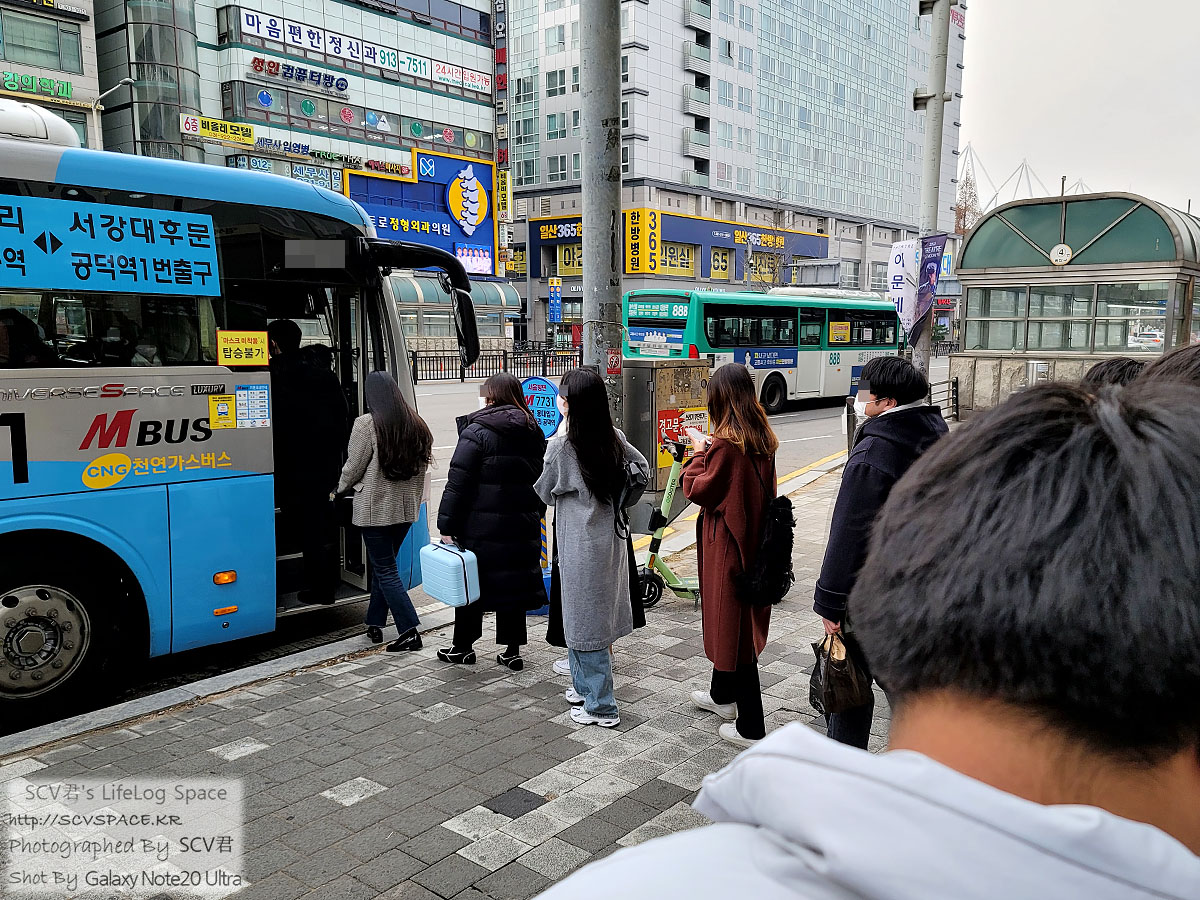 그래서 반대편 정류장에서 뜸한 배차의 마을버스를 타고 두정거장 앞인 대화역에 가서 버스를 기다렸습니다. 다행히 대화역에선 일반인(?)들이 더 많이 탔고.