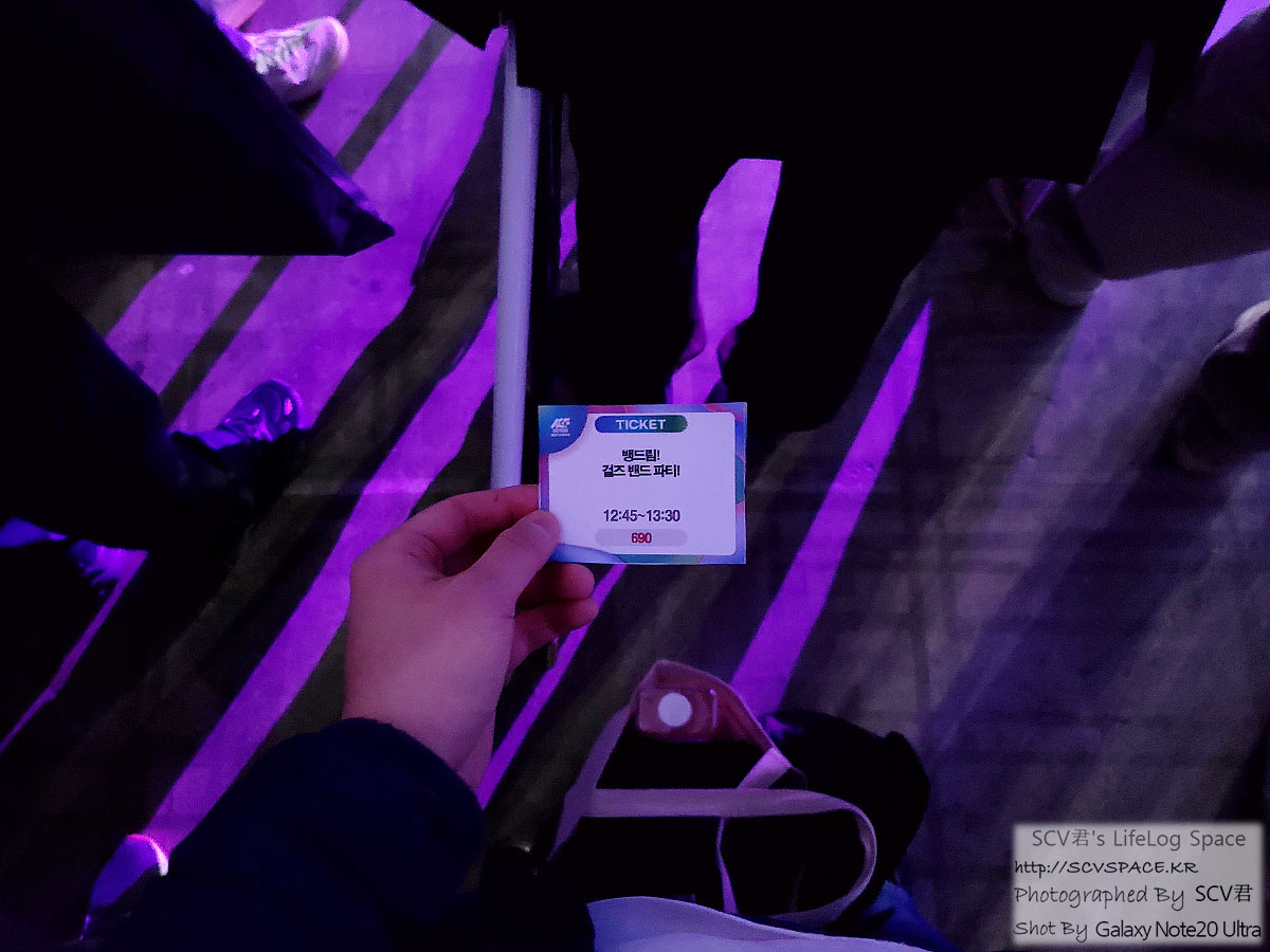 팔찌는 바로 착용해야 해서 사진찍고 왼쪽에 둘렀고, 저 티켓처럼 생긴건 DAY2까지 함께 산 분들의 확인절차 간소화용.