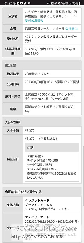 간만에 이플러스 선행예매에 카드를 걸어놓아서, 결과발표 전날(12/7 13:00) 오후에 일찌감치 승인오는것도 확인했고.