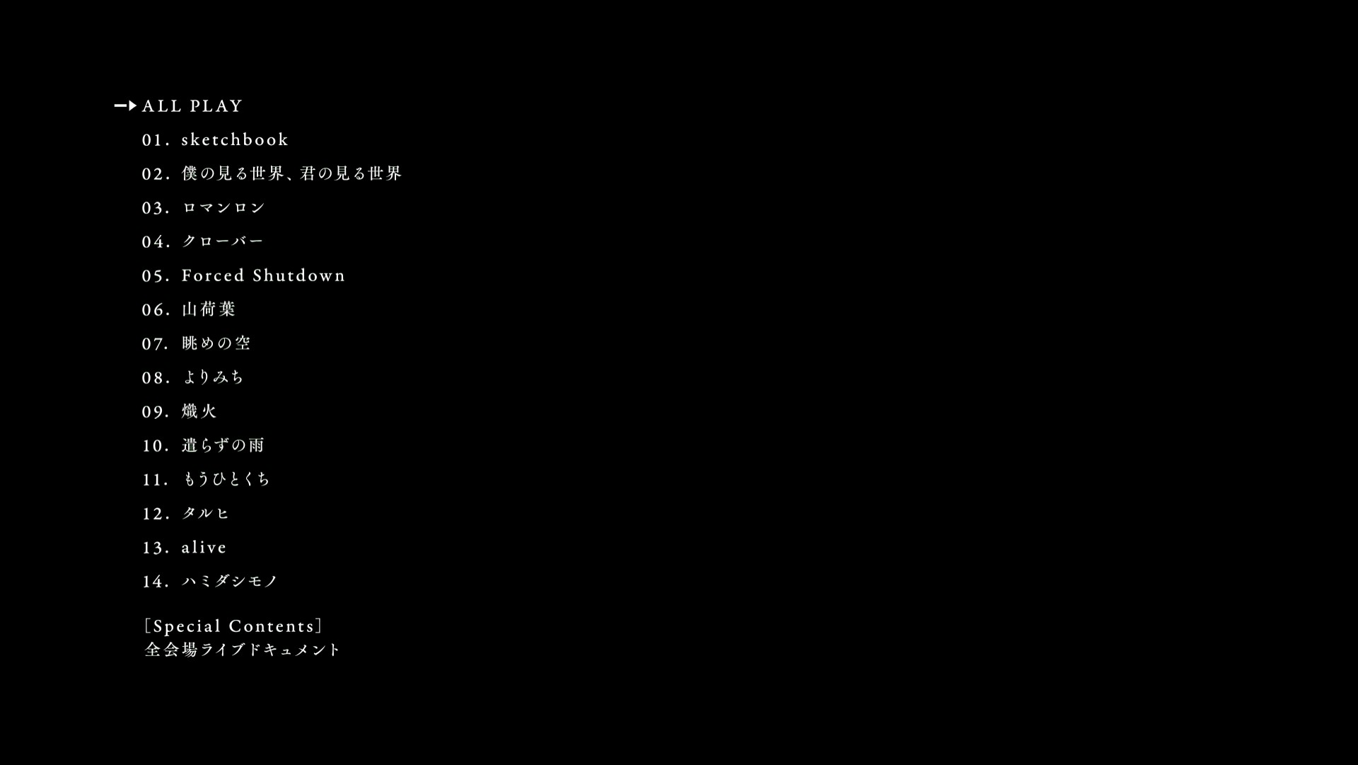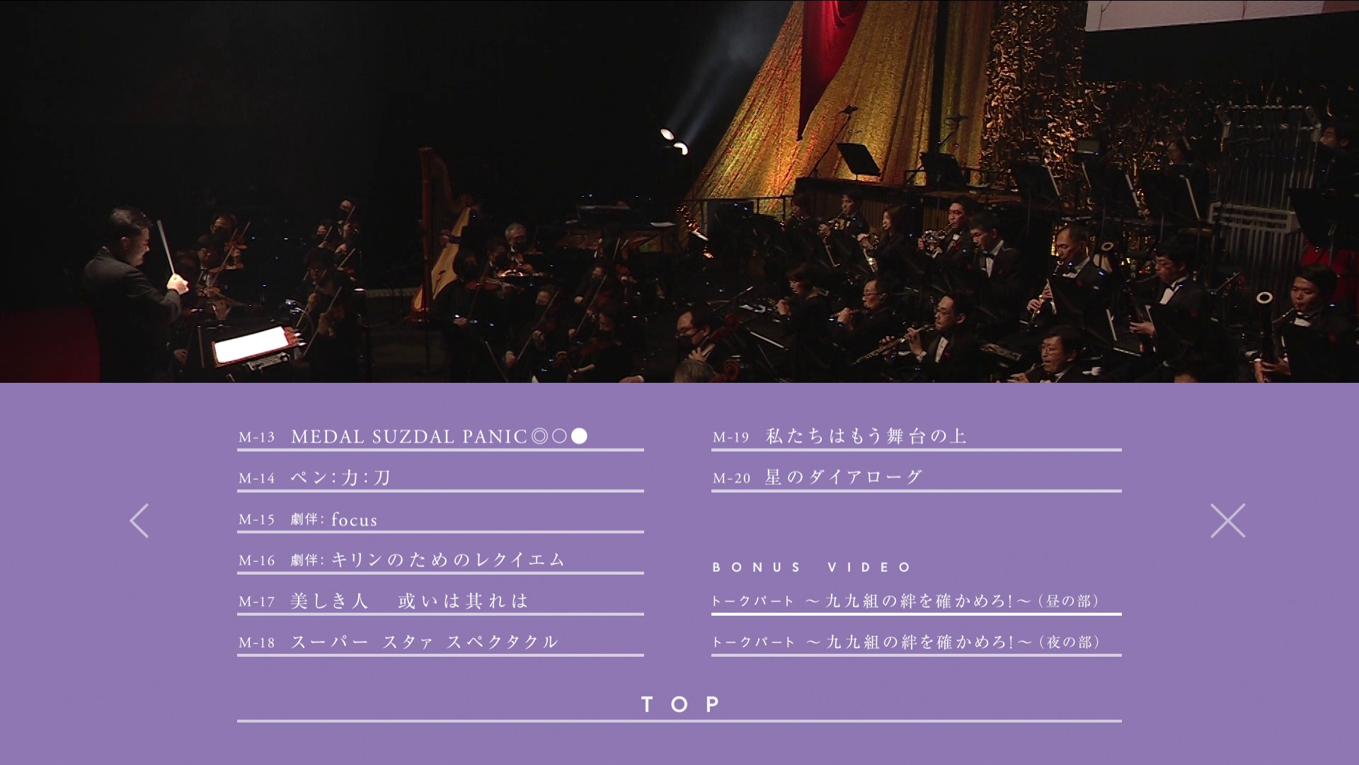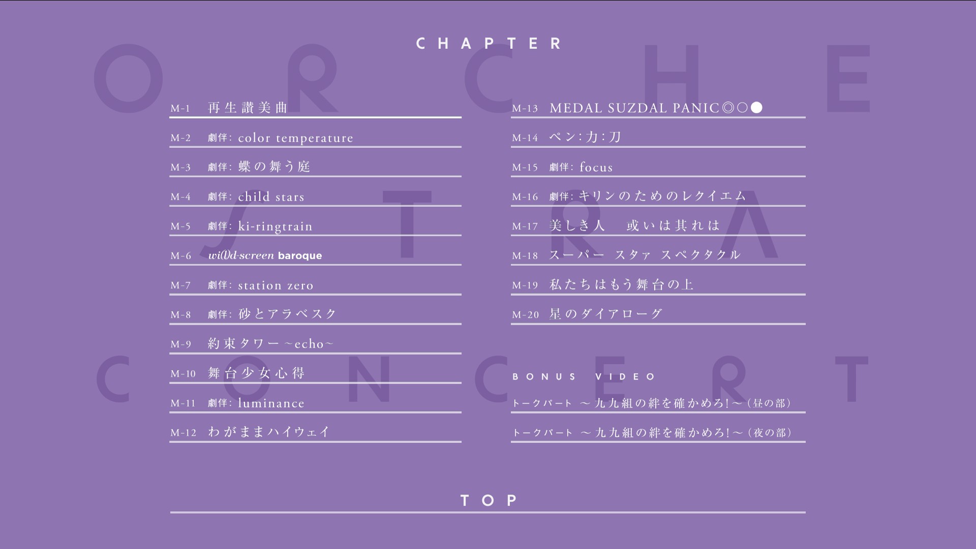 다만 이 챕터를 쓴 블루레이의 정식 메뉴는 없으며, 프로그램 혹은 플레이어의 챕터선택 기능을 사용해야 합니다. (수록곡과 MC를 챕터 계산에 넣으면 순서 유추 가능)