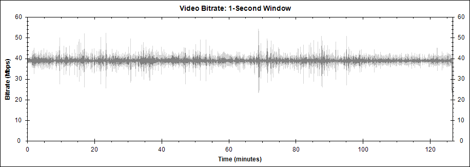 평균 비디오 비트레이트는 38,974 kbps, 1080i. 2:06:40초짜리 본편은 37.6GB의 m2ts 1개로 구성되어 있습니다.