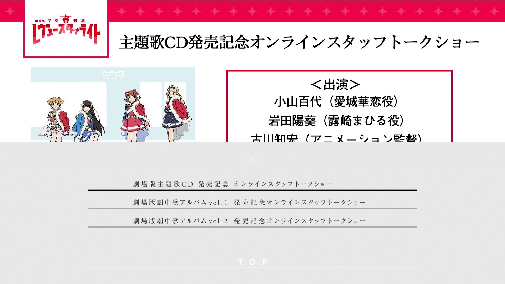 아무튼 신작 극장판 주제가와 극중가 앨범 Vol.1, Vol.2 발매기념 스태프 토크쇼 영상이 실려있습니다.