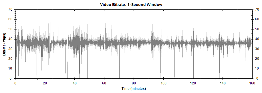 본편과 영상특전이 한 mpls에 묶여있어 부득이하게 영상특전과 함께 비트레이트 차트가 계산되었습니다. 이를 감안하고 봐 주시면 좋겠습니다. (하단 100분 정도 지점부터가 영상특전)