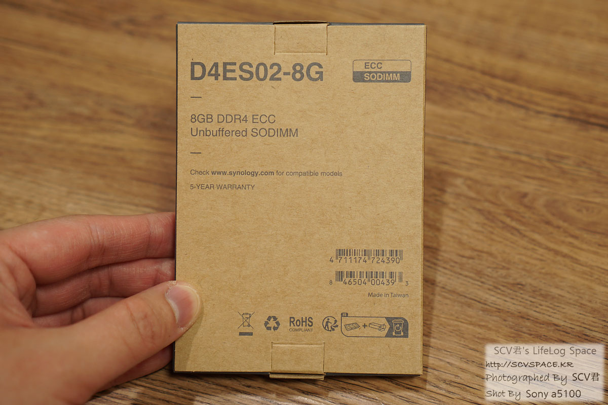 아까 언급하긴 했습니다만, NAS 장착용 8GB RAM, 모델명 D4ES02-8G, 제조사는 시놀로지입니다.