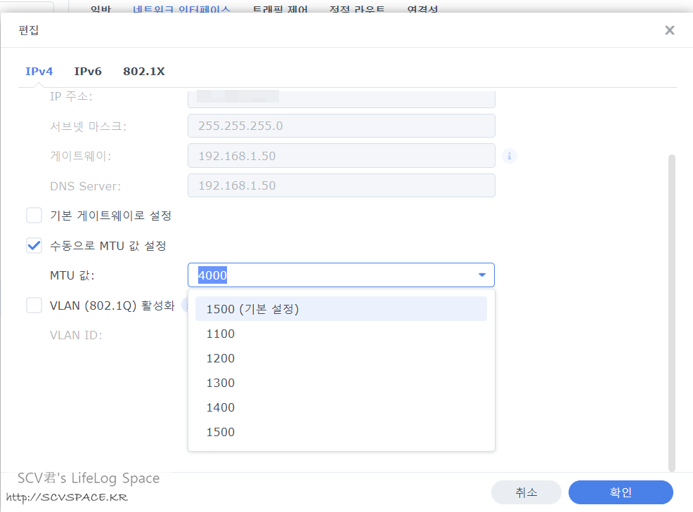 (MTU가 DS218play 에서는 4000 이상 설정 가능했으나, DS723+ 에서는 1500이 최고값)