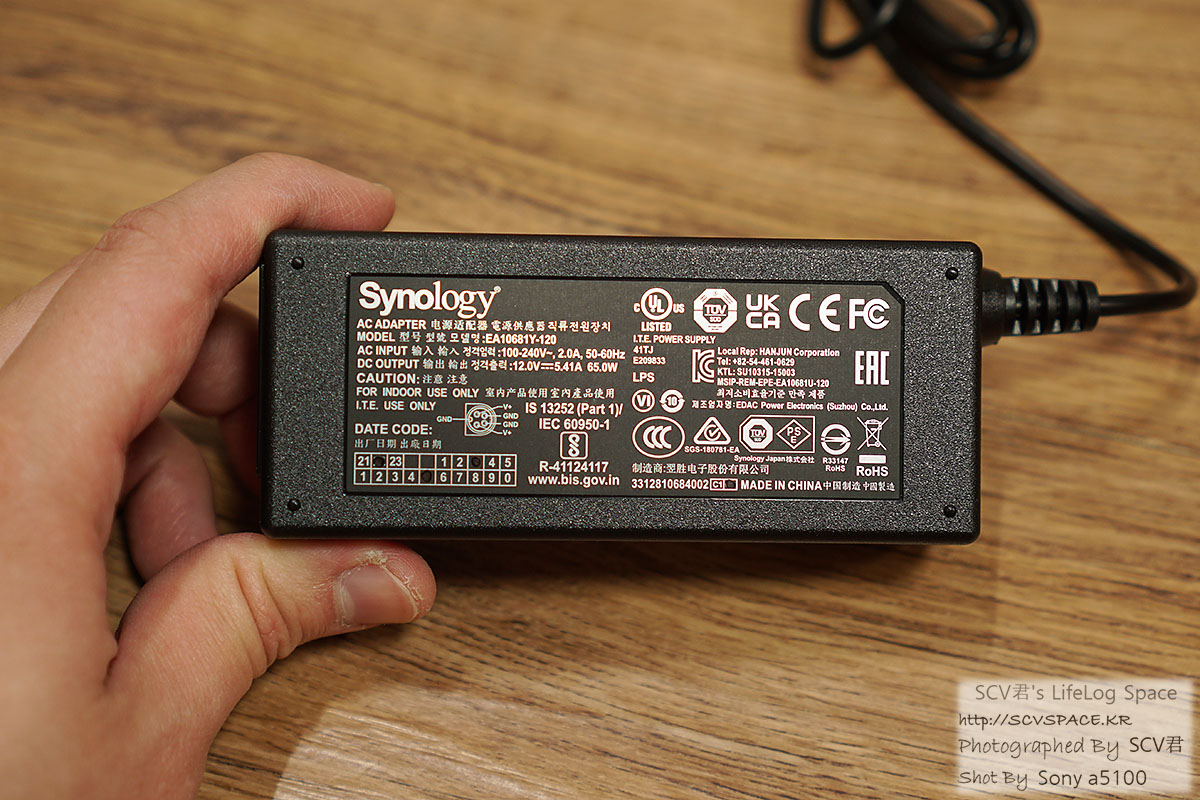 전원 어댑터는 65W 출력으로 제가 이전에 사용하던 DS218play, DS216j 의 60W보다는 높습니다.