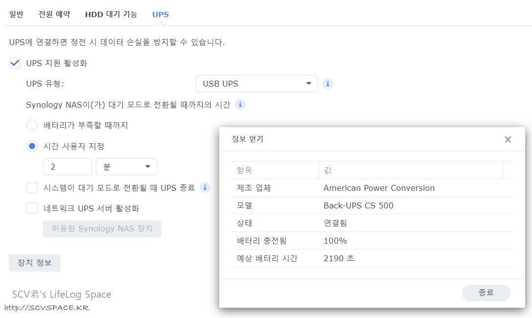 최종적으로 쓰던 UPS의 USB 연결까지 옮기면서 DS723+ 환경 준비 끝.