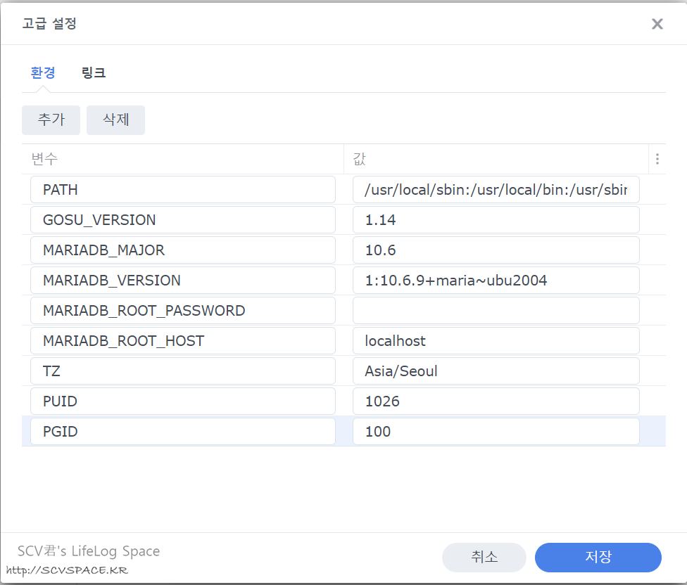 물론 이렇게 권한을 설정하면서, Docker 컨테이너 설정시에도 PUID와 PGID 를 설정해주셔야 합니다.