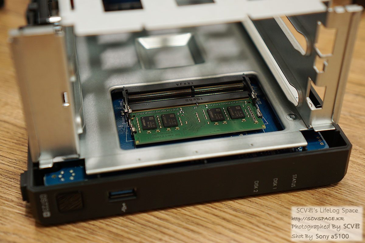 참고로 DS723+는 RAM 슬롯이 저렇게 HDD 수납부 안쪽에 있습니다. 디스크 장착 전에 참고하시길.