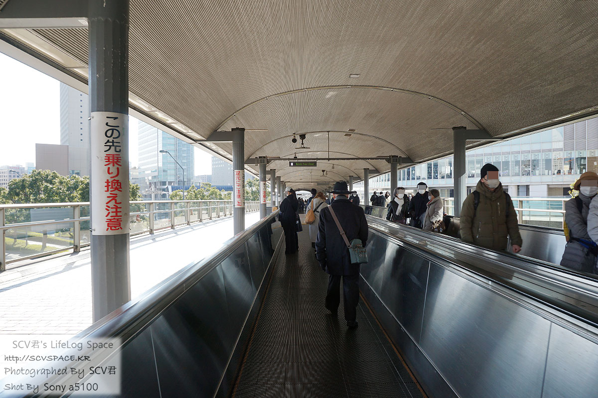 영화관 가까이 오면 이렇게 호텔 방향이 아니라 고가도에 설치된 무빙워크를 따라, 영화관이 입주한 코레트 마레(コレットマーレ)라는 쇼핑몰 쪽으로 빠지게 됩니다.